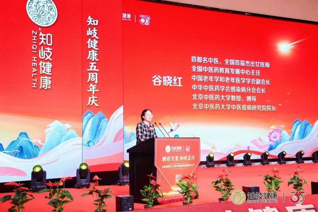谷晓红、李佃贵、张冰、王宗廉分别上台讲话。他们高度肯定了知岐健康五年来在中医药传承创新、企业创新发展、健康产品研发等方面的努力与成果,从行业发展趋势、中医药价值、健康产业前景等角度,为知岐健康未来的发展提出了宝贵建议,也为现场带来了一场中医药健康的思想盛宴。