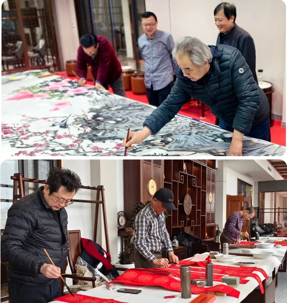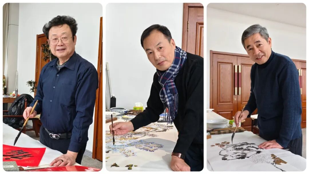 窗外寒风凛冽,活动现场却红幅铺展、墨香四溢、暖意融融。研究会书画院院长刘玉泉、副院长李向东、原副院长兼秘书长董廷新,特邀画家马麟春、郭执铨、时德胜、吴春玉,特邀书法家魏永年、吕晓东等纷纷挥毫,将美好的祝愿凝聚于笔端。