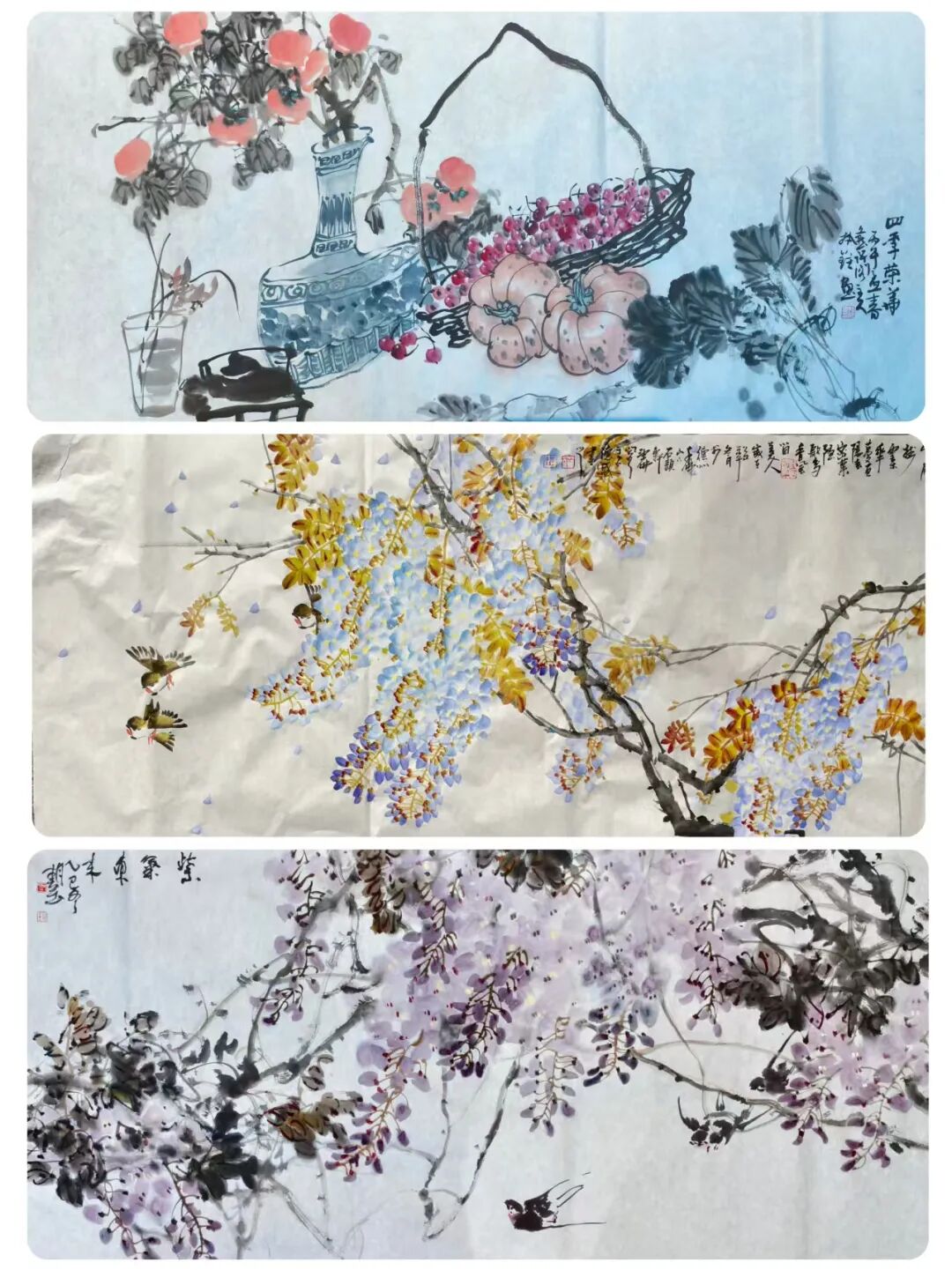 画家们则以生动笔墨描绘出盛世山水、乡村新貌,作品色彩明快、构图精巧,融传统韵味与时代气息于一体。