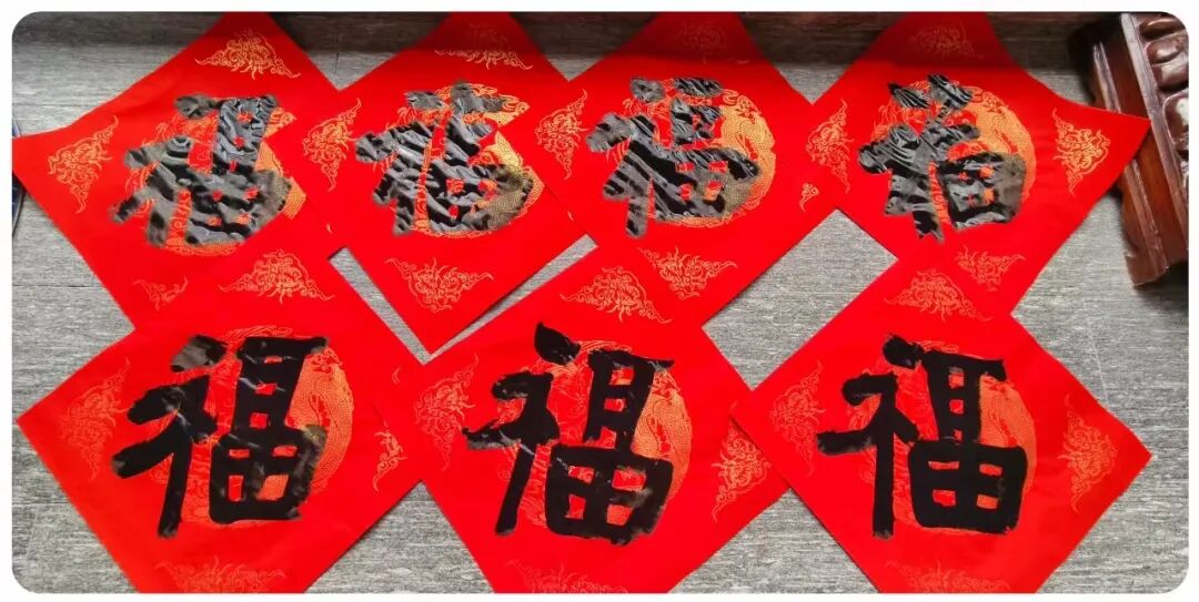 书法家们笔走龙蛇,一幅幅充满吉祥寓意的春联、一张张饱满有力的“福”字跃然纸上,行草苍劲、楷书端庄、隶书古朴,各具神韵。