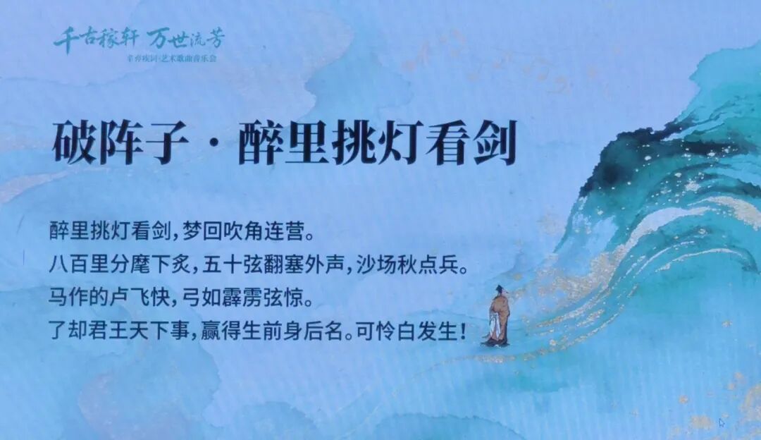演出精选《破阵子·醉里挑灯看剑》《丑奴儿·少年不识愁滋味》等12首经典词作,并特别呈现原创作品《千古稼轩》。