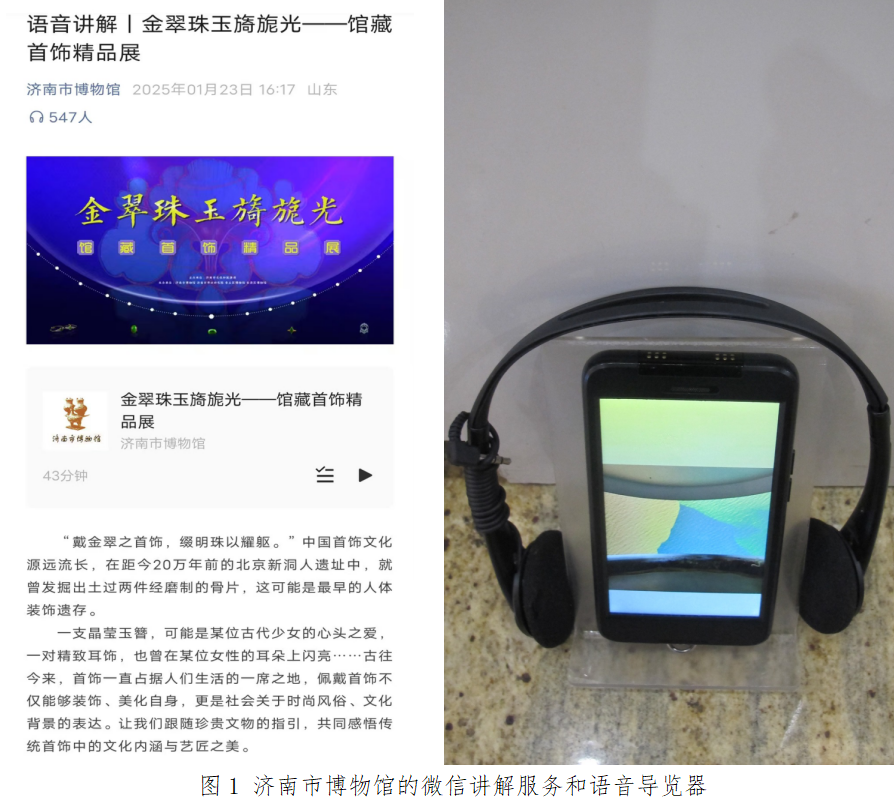4、济南国有和部分非国有博物馆正在采用抖音、快手等直播自媒体以及微信、微博等新媒体平台进行文化传播和博物馆信息传递,调查样本中1/3的国有博物馆目前能够提供手动语音导览器、感应式语音导览器等智慧讲解设备,如济南市博物馆为观众提供微信讲解服务和许多语音导览器(图1);有少数国有博物馆还提供机器人或AR眼镜导览服务,如章丘区博物馆目前就提供机器人导览服务。